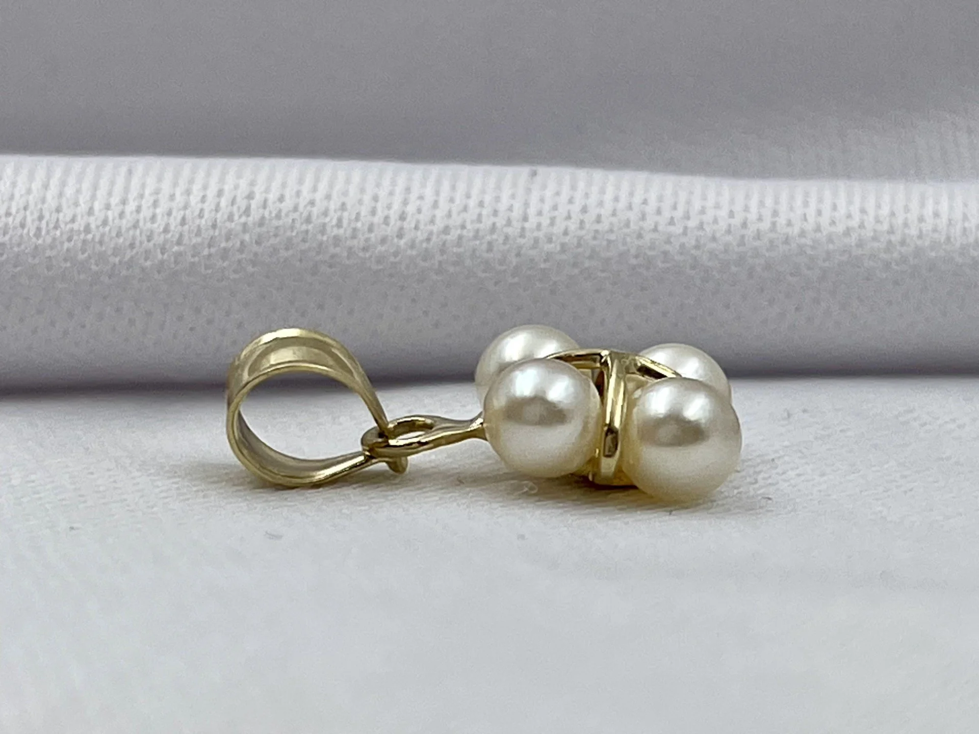 This unique pearl pendant is artfully crafted in 14k yellow gold. At the center of the design is a “+” of shining yellow gold that fills the gaps between the four round white pearls set into a unique square shillouett. Sure to be a heartfelt gift, or a welcome addition to your own collection.